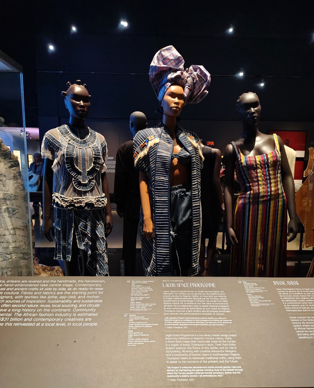 The exhibition features nearly one hundred pieces, highlighting designers, makers, and photographers from across the continent. Seeing the vibrancy of early pioneers like Chris Seydou alongside contemporary innovators like Thebe Magugu (with his stunning Alchemy collection) and the bold designs of IAMISIGO truly connected the past to the present.