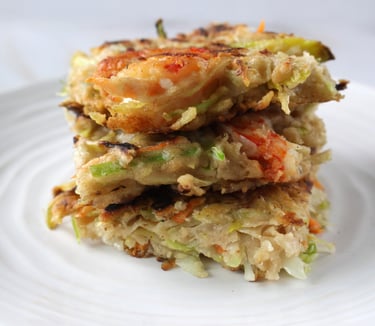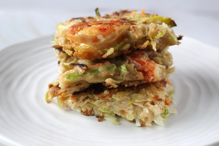 Inspired by the tasty Korean Seafood Pancake (Haemul Pajeon), this gluten-free recipe uses seasonal shredded cabbage, leek, and carrot to add natural texture and sweetness. The combination of oatmeal flour and rice flour creates a crispy exterior with a soft, flavorful interior. Packed with savory shrimps, it’s a great option for anyone looking for a healthier, gluten-free alternative to traditional Korean Haemul Pajeon.