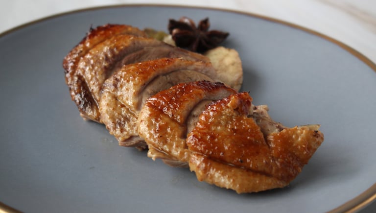 Rest & serve: Let the duck rest for 10 minutes before slicing.