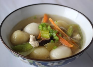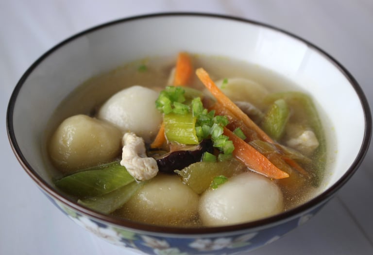 Savory Squash Tang Yuan: Turkey & Leek Glutinous Rice Ball Soup (Asian Fusion)