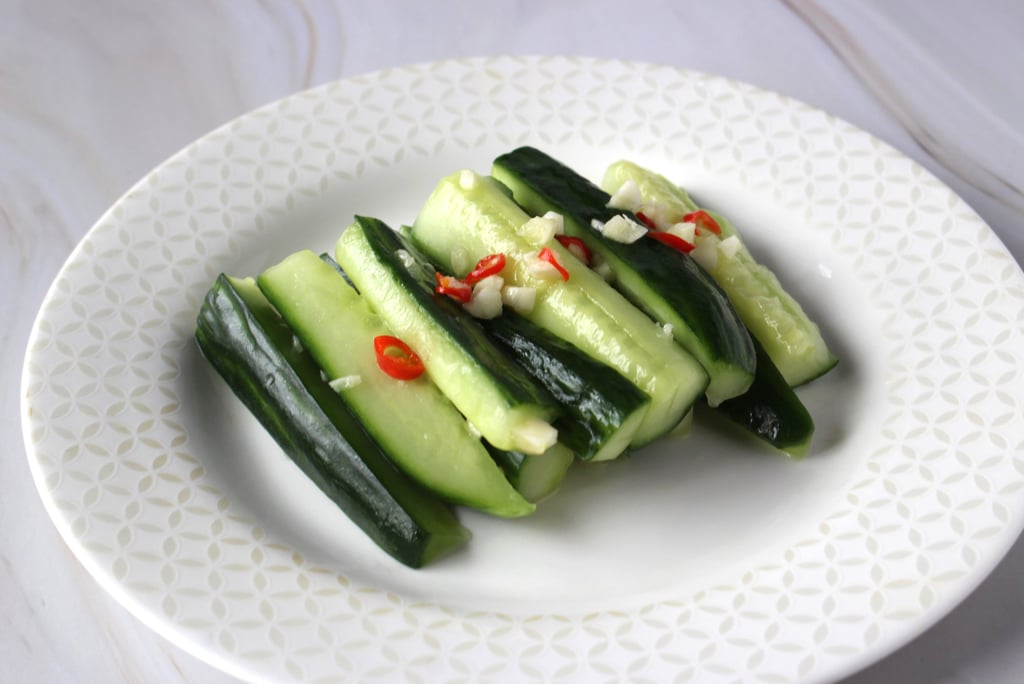 Fresh, crisp Canadian cucumber, Taiwanese style. Garlic, sesame oil, fresh chili, lemon juice, and maple syrup all come together in a simple salad that's utterly delicious.